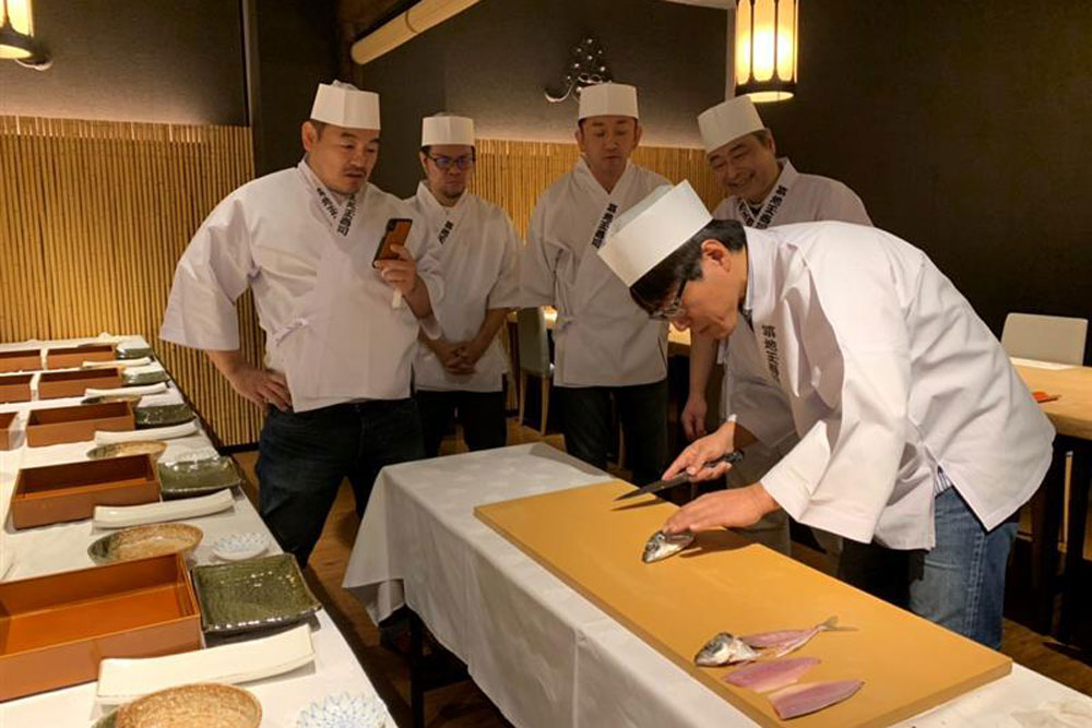 職人の指導を受けながら寿司づくりに挑戦し、和やかな雰囲気で楽しい交流が生まれました。